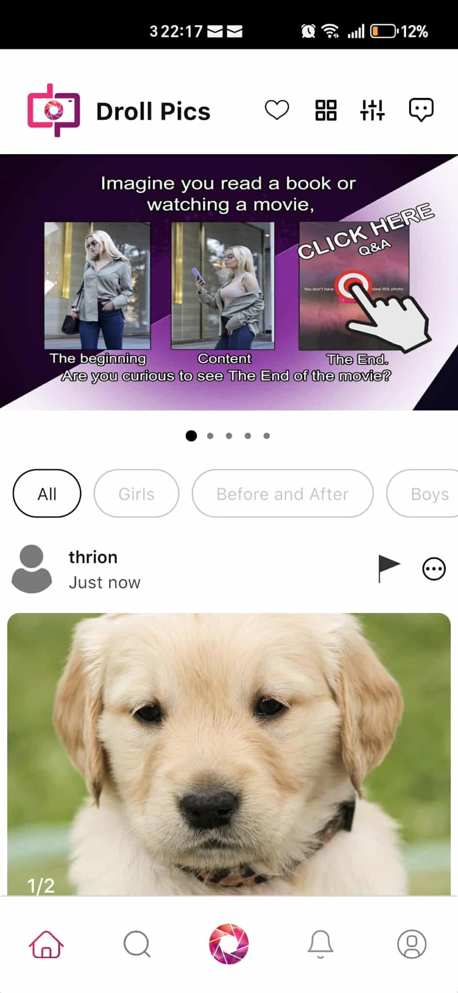 The idea behind Droll Pics is simple: creativity and curiosity. Share selfies in stories of 2 or 3 photos, let followers wonder “What’s next?”, and earn credits when they unlock your final photo. It’s a social media app that transforms photos into both fun and income.