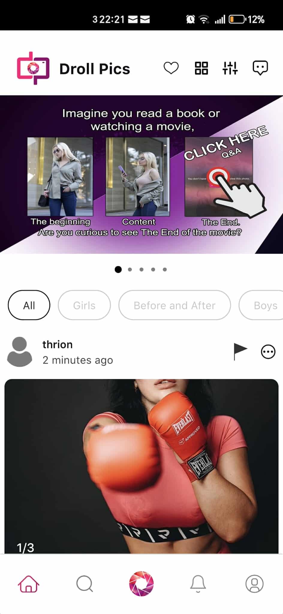 Droll Pics – Create a story in 3 Pics – hooks your audience with storytelling in selfies. Start with two free images to build anticipation, then keep the final photo locked. To see the ending, fans must pay with credits. Curiosity fuels engagement, and engagement turns into real earnings.